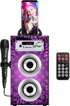 - Lieferumfang: Karaoke-Lautsprecher, Mikrofon mit Kabel, Micro-USB-Kabel, AUX-Kabel und Benutzerhandbuch