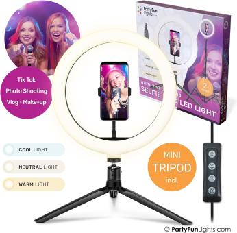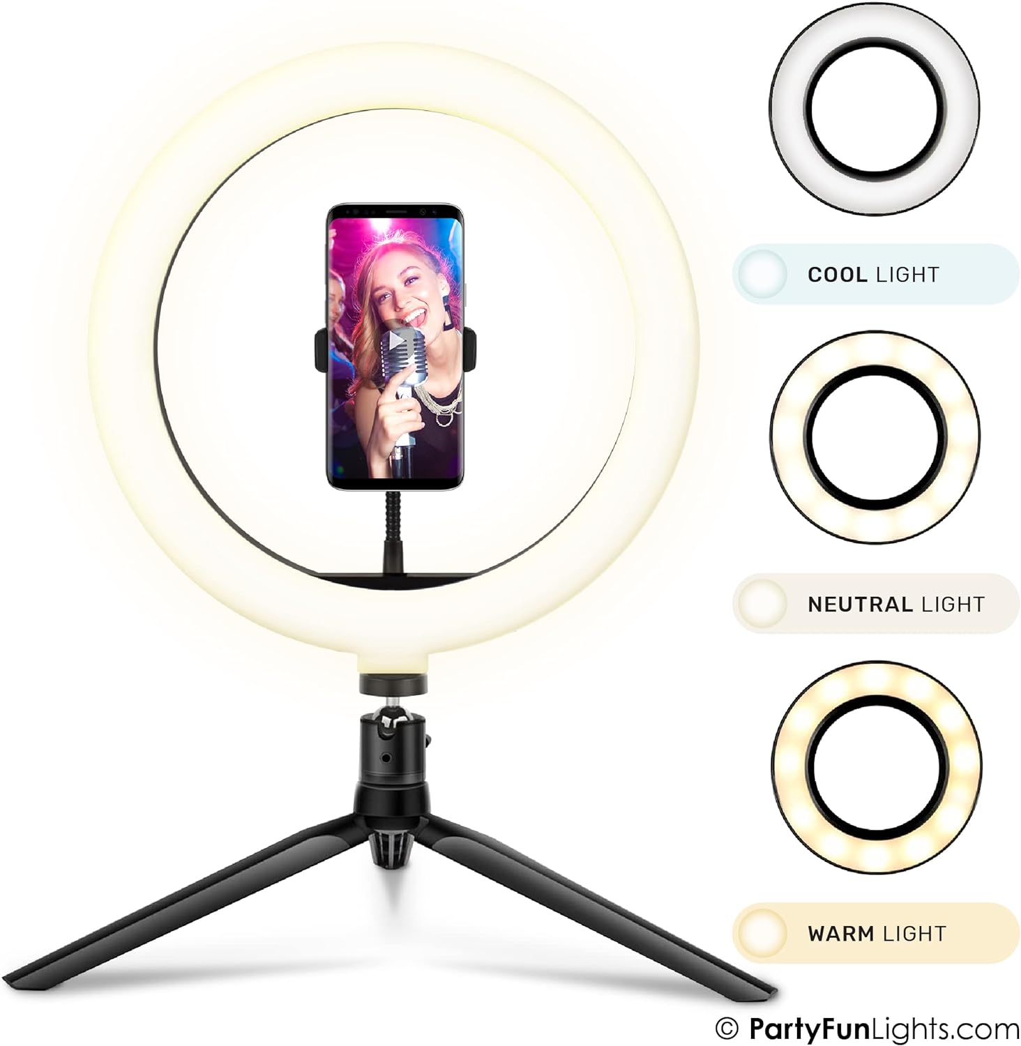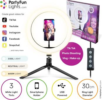 - 30cm Ringlicht: Das PartyFunLight Ringlicht kommt mit Stativständer & Handyhalterung, es kann ein besseres Bild für Make-up, Fotos, Videos, Bücher lesen, Live-Streaming, Zoom, Skype oder Facetime Videokonferenzen erstellen!