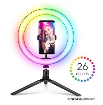 - Lieferumfang: Selfie Ring RGB LED Licht, Kleines Stativ - Telefonhalter, USB Kabel + Schalter und Sicherheitshinweise