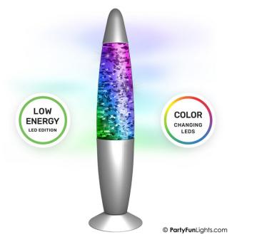 - Diese Glitter Lamp hat 9 farbwechselnde LEDs und ist insgesamt 34 cm hoch.