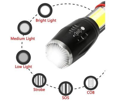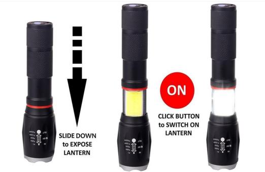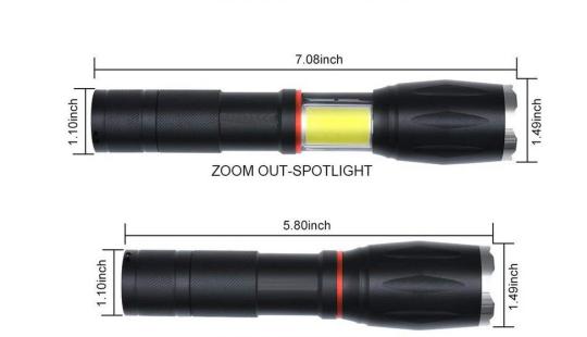- VERLÄNGERTES NACHTLICHT: Nachdem das Taschenlampengehäuse teleskopisch ausgefahren ist, kann der Benutzer eine zusätzliche Lampe verwenden, die als Nachtlampe, Zeltlicht usw. funktioniert.