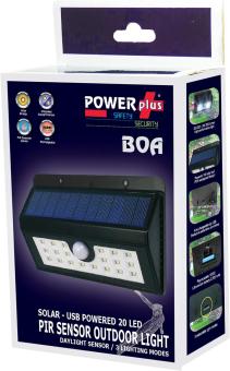 - Der POWERplus Boa ist eine Gebäudebeleuchtung, die d.m.v. geladen werden kann. Zone-Energie auf USB. Die Boa verfügt über einen Infrarotsensor, einen Tageslichtsensor und 3 verschiedene Lichtstärken.