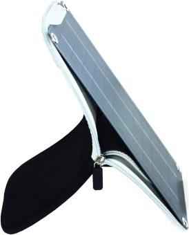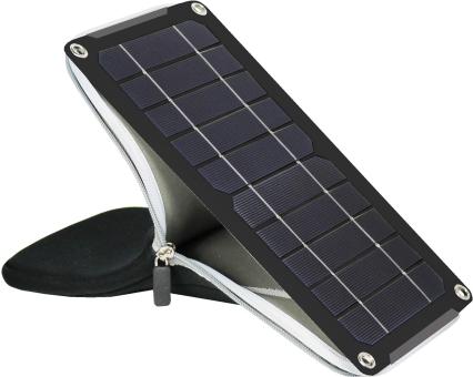- Darüber hinaus arbeitet der Krokodil mit einer externen 5W Solarzelle, die unter Optimal- bedingungen 3.5W produziert, in einer Neopren Tasche verstaut ist die gleichzeitig zur optimalen Ausrichtung des Panels dient.