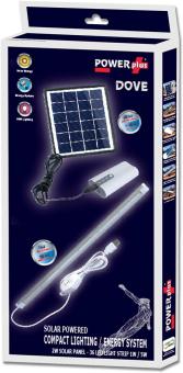 - Die POWERplus Dove ist ein kleines und kompaktes Solarbeleuchtungs – u. Energie System, welches folgende Teile enthält: 2W Polykristallines Solarmodul mit gehärtetem Glas 1W-5W LED USB Lichtleiste mit Kabel und Schalter Leuchtfarbe: 3000K Powerbank mit auswechsbarer 18650 Lithium Zelle, gesammt 4.000 mAh