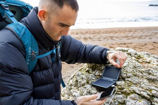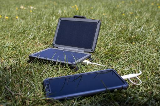- Neben dem Aufladen von 5-V-Geräten kann der Solar Adventurer II kompatible USB-C-Laptops laden, was ein paar zusätzliche Stunden der Nutzung ermöglicht.