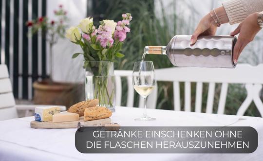 • Tolles Design: Das einzigartige Produkt hält Wein, Mineralwasser, Sekt oder jedes andere Getränk dieser Größe bis zu 6 Stunden kühl!