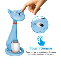 • Tom ist mit ultraempfindlichen Berührungssensoren an beiden Augen der Katze ausgestattet, wodurch es kinderfreundlich und bequem zu bedienen ist. Tippen oder berühren Sie einfach, um die Helligkeit zu erhöhen oder zu verringern oder das Licht ein- und auszuschalten. Die erstklassigen Berührungssensoren sind sicherheitsgeprüft und manipulationssicher, um kleine Finger zu schützen.
