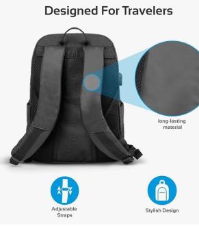 - Er verfügt über gepolsterte Schultergurte, leicht zugängliche Taschen und einen integrierten USB-Anschluss zum Aufladen Ihrer Geräte the go.
