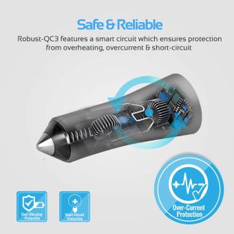 • Laden Sie Ihre Geräte mit Robust-QC3, einem 4,8-A-Hochleistungs-Autoladegerät mit 2 ultraschnellen Ladeanschlüssen und USB 3.1 Typ-C, bis zu 4-mal schneller auf als mit anderen herkömmlichen Autoladegeräten.