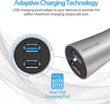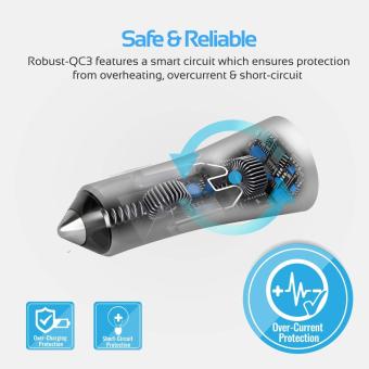 • Laden Sie Ihre Geräte mit Robust-QC3, einem 4,8-A-Hochleistungs-Autoladegerät mit 2 ultraschnellen Ladeanschlüssen und USB 3.1 Typ-C, bis zu 4-mal schneller auf als mit anderen herkömmlichen Autoladegeräten.