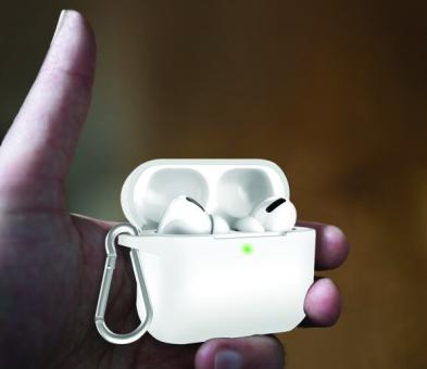 - Abnehmbarer Metallkarabiner: Befestigen Sie die AirPods Pro an Ihrer Tasche oder Kleidung.