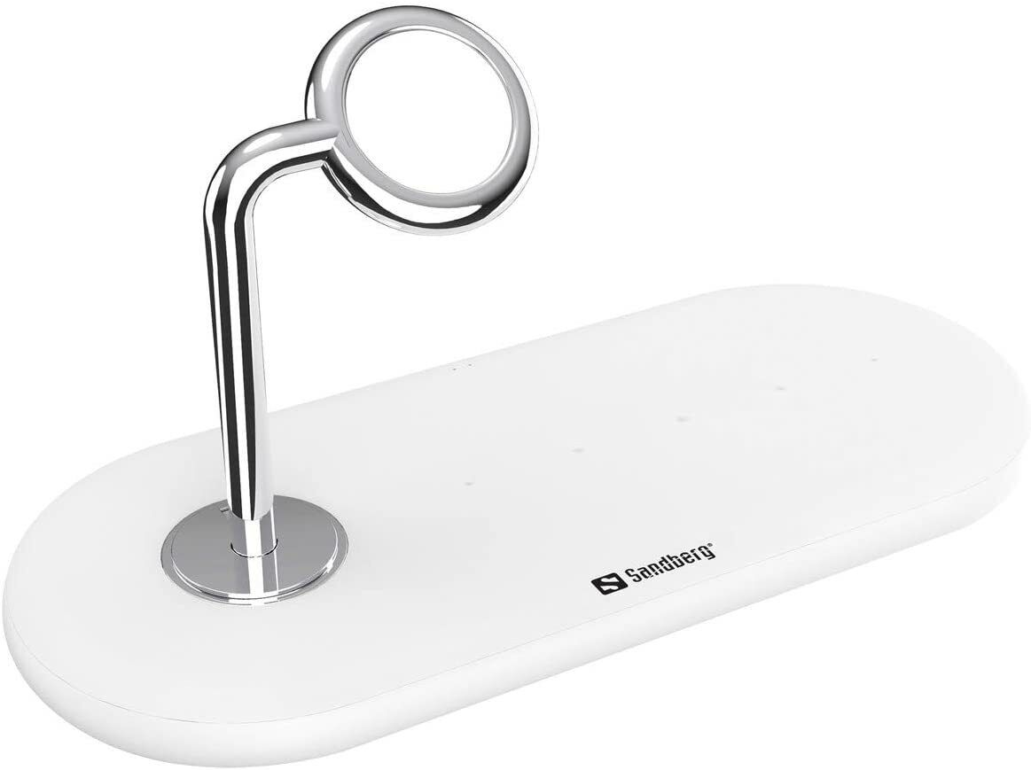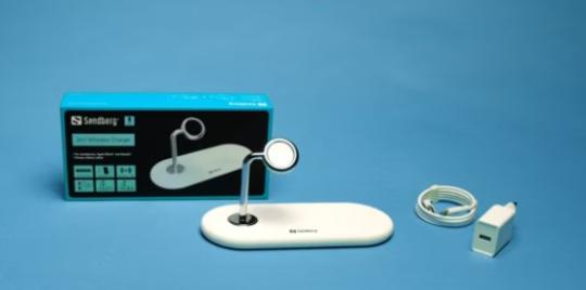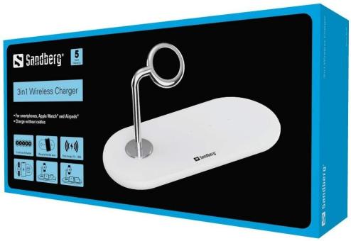 - Mit dem kabellosen 3-in-1-Ladegerät von Sandberg können Sie zwei Qi-fähige Smartphones und eine Apple Watch oder ein Qi-fähiges Smartphone, ein Paar Apple Airpods und eine Apple Watch gleichzeitig laden.
