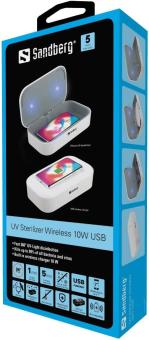- Mit dem Sandberg UV Wireless 10W USB ist werden Viren und Bakterien auf Mobiltelefonen, Ohrhörern, Autoschlüsseln, Brillen, Schmuck usw. vernichtet. Der Aufbau der UV-Lichtquelle in der Box garantiert eine 360°-Abdeckung des Geräts durch effektives UV-Licht.