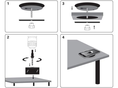 - Sandberg Wireless Charger for Desk ist ein cleveres Mobil-Ladegerät zur Integration in die Oberfläche Ihres Schreibtisches. Mitgeliefert wird eine Lochsäge (für Holz), die Sie in eine Standard-Bohrmaschine einspannen können. Innerhalb weniger Sekunden haben Sie damit eine Öffnung in Ihren Schreibtisch gesägt, die perfekt für das Ladegerät geeignet ist. Nun müssen Sie Ihr Telefon einfach nur darauf legen, um es aufzuladen.