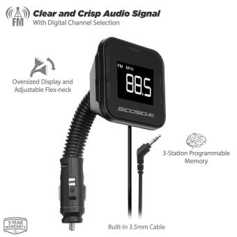 - Mit dem Scosche FMTD13 TUNEIT können Sie Musik von Ihrem Gerät mit kristallklarem, klarem Klang auf Ihrem Autoradio wiedergeben.
