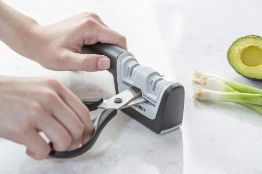 - Der patentierte Scherenschärfer ist für Rechts- und Linkshänder geeignet und verfügt über schwimmende Keramikstangen.