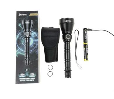 - Die SPERAS T1 Taschenlampe verfügt über eine Superstrahlentfernung von 1300 m und eine hohe Leistung von 1200 lm, maßgeschneiderte OSRAM-LEDs, einen synchronen Abwärtsschaltkreis mit hohem Wirkungsgrad von bis zu 92 % und ein spezielles optisches System.