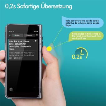 - Der T1 Sprachübersetzer ist mit einem 4-Zoll-Touchscreen ausgestattet, der doppelt so groß ist wie der herkömmlicher Handheld-Übersetzer mit Sprachausgabe und