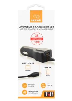 - Zigarettenanzünder-Ladegerät zum Aufladen Ihres GPS oder Geräts mit Mini-USB 2A + einem USB-Anschluss 1A zum Aufladen Ihres Smartphones, iPods...