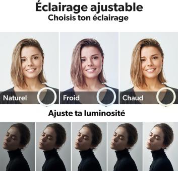- Einstellbares Licht, wählen Sie zwischen drei verschiedenen Lichtschattierungen, warmes Licht, kaltes oder natürliches Licht; Passen Sie die Helligkeitsstufe Ihres Ringlichts an und wählen Sie die ideale Beleuchtung für Ihr Foto oder Video; Das Ringlicht wird über das angebrachte USB-Kabel mit Strom versorgt
