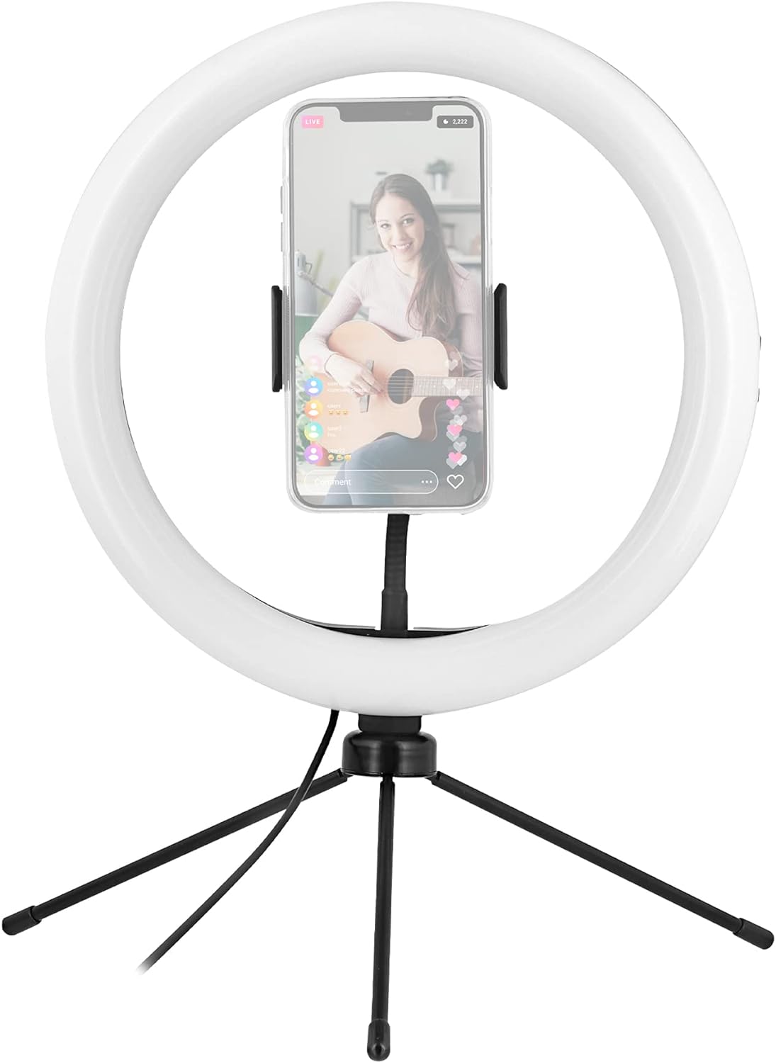 - Dieser 10-Zoll-Leuchtring ist ein unverzichtbares Zubehör für alle Ihre Aufnahmen. Die Form des Rings ermöglicht eine gleichmäßige Streuung des Lichts, sodass Kontrastunterschiede und sichtbare Schatten vermieden werden.