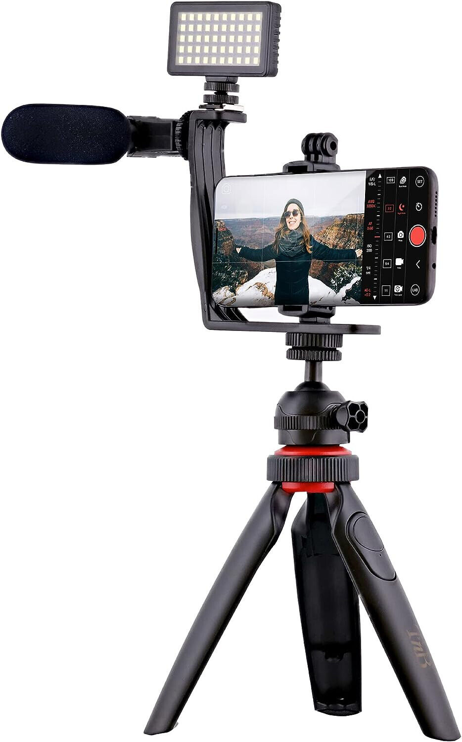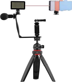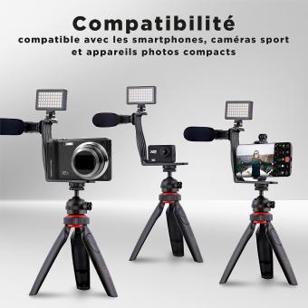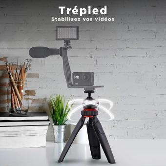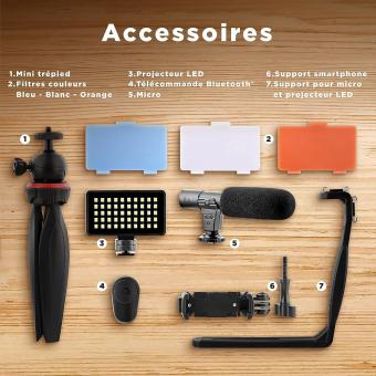 - Halten Sie Ihre Leidenschaften fest und entfesseln Sie Ihre Kreativität mit diesem Komplettpaket an Vlogger-Zubehör. Mit diesem Kit haben Sie alle Werkzeuge, um Ihre Videos zu sublimieren: Mini-Stativ, Smartphone-/Kamerahalter, Mikrofon, LED-Licht und Bluetooth®-Fernbedienung.