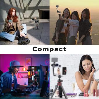 - Das kompakte Stativ sorgt dafür, dass Ihre Videos drinnen und draußen stabil bleiben.