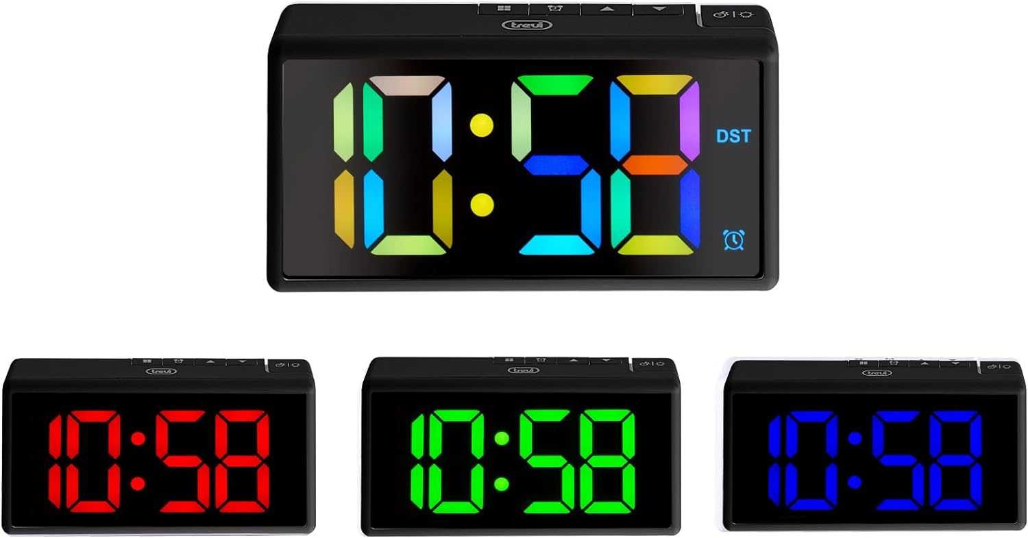 - Erwachen Sie mit Freude und Stil mit der Trevi EC 886 Digitalwecker mit großem mehrfarbigem Display Mit einer verspiegelten Frontoberfläche bringt dieser Wecker nicht nur eine präzise Zeitanzeige, sondern verleiht Ihrem Raum auch einen Hauch von Eleganz und Farbe.