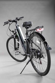 - Das Fahrrad verfügt über helle LED-Leuchten, einen hinteren Gepäckträger und eine mechanische Klingel für zusätzliche Sicherheit.