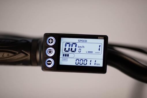 - Das LCD-Multifunktionsdisplay am Lenker zeigt Ihnen alle wichtigen Informationen wie die Geschwindigkeit und die Batterieleistung an.