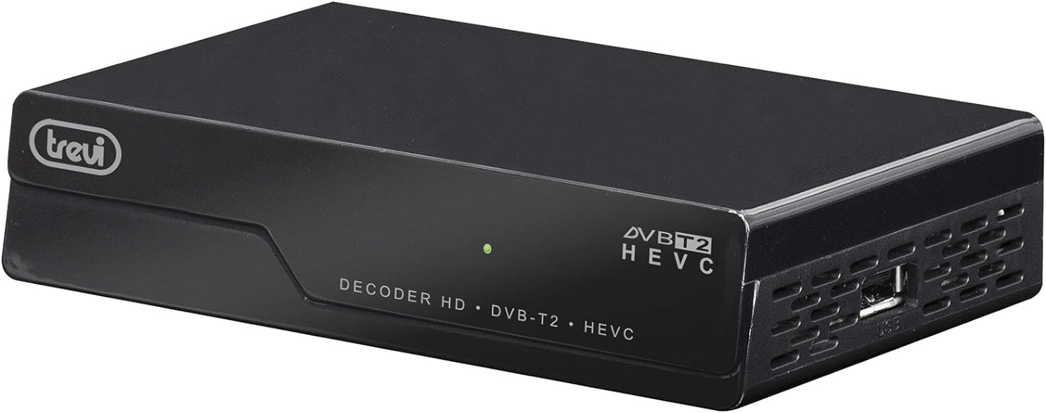 - Der Trevi-Decoder ist ein Empfänger für digitale terrestrische DVBT-T2 HD-Signale. Er kann aber auch Multimedia Dateien Inhalte im JPEG - , MPEG4 - , MP3 - , HEVC - und HD - Format lesen . Es ist auch mit verschiedenen Videoformaten wie 720p, 1080i und 1080p kompatibel.