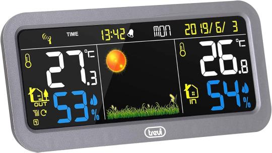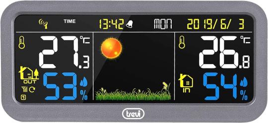 - Trevi ME 3P20 RC Wetterstation mit Farb-LCD-Display und kabellosem Außensensor.