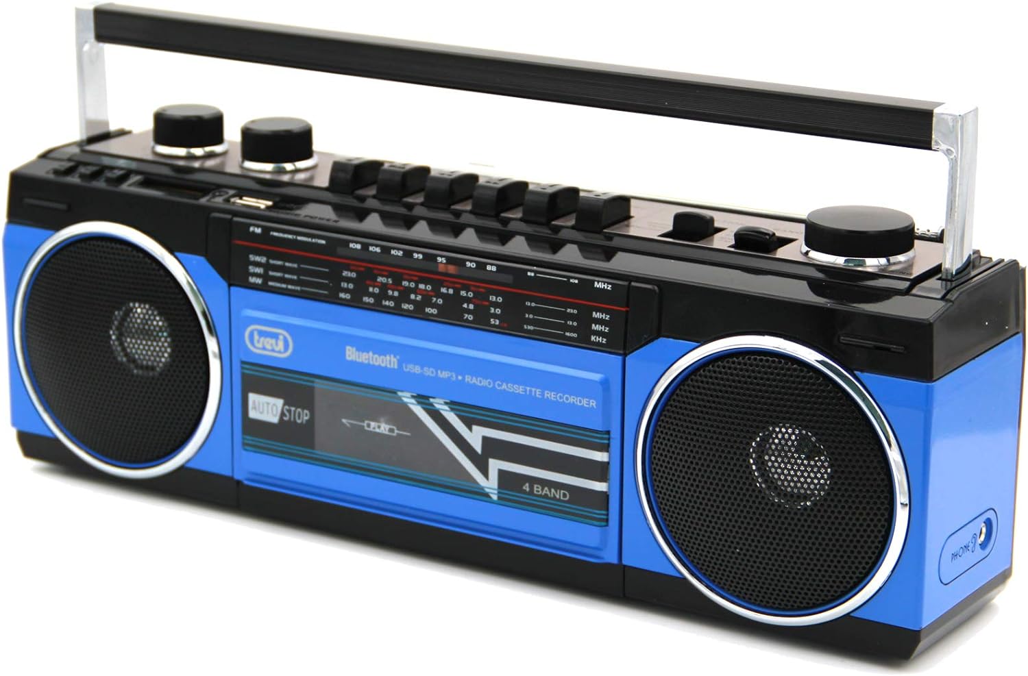 - Der Radiorecorder TREVI RR 501 BT ist mit vielen verschiedenen Funktionen ausgestattet.