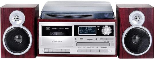 - Das Stereo-System mit DAB/DAB+ Digitalempfänger ist das perfekte Gerät, um all Ihre Lieblingsmusik von den verschiedensten und verschiedenen Medien abzuspielen. Trevi TT 1072 DAB ermöglicht das Lesen von Vinylplatten mit 33, 45 und 78 Umdrehungen sowie MP3-Dateien von CDs, USB-Sticks, SD-Karten, AUX-Eingang und PCs, Smartphones und Tablets über kabellose Bluetooth-Verbindung. Darüber hinaus ist er sowohl Musik-Player als auch Recorder mit automatischer Aufnahmestufe und Autostopop-Funktion.