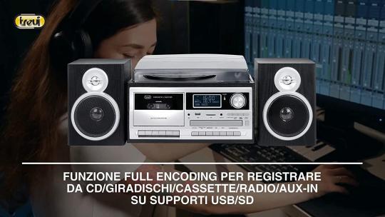 - Dank DAB-Radio neben klassischen analogen Radiofrequenzen können Sie mit dem Trevi Plattenspieler auch alle Sender hören, die mit digitalem Signal mit maximaler Genauigkeit und Tuning-Empfindlichkeit bis zu 30 Speichern für schnellen und einfachen Zugriff und Informationen auf das LCD-Display mit blauer Beleuchtung anzeigen. Mit der Full Encoding-Funktion können Sie Trevi TT 1072 DAB verwenden, um auf USB und SD aufzuzeichnen, während die Full-Recorder-Funktion Ihnen nützlich ist, wenn Sie auf einer Kassette aufnehmen möchten. Das Stereo-System mit DAB/DAB+-Digital-Receiver ist sowohl von den Tasten auf der Vorderseite als auch aus der Ferne über die mitgelieferte Fullcontrol-Fernbedienung steuerbar und wird mit Stromkabel betrieben.