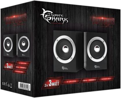 - Das Lautsprechersystem 2.0 von White Shark hat eine Leistung von 6 Watt und umfasst zwei Stereolautsprecher, die für alle geeignet sind, die sie auf kleinem Raum aufstellen möchten oder tragbare Lautsprecher benötigen.